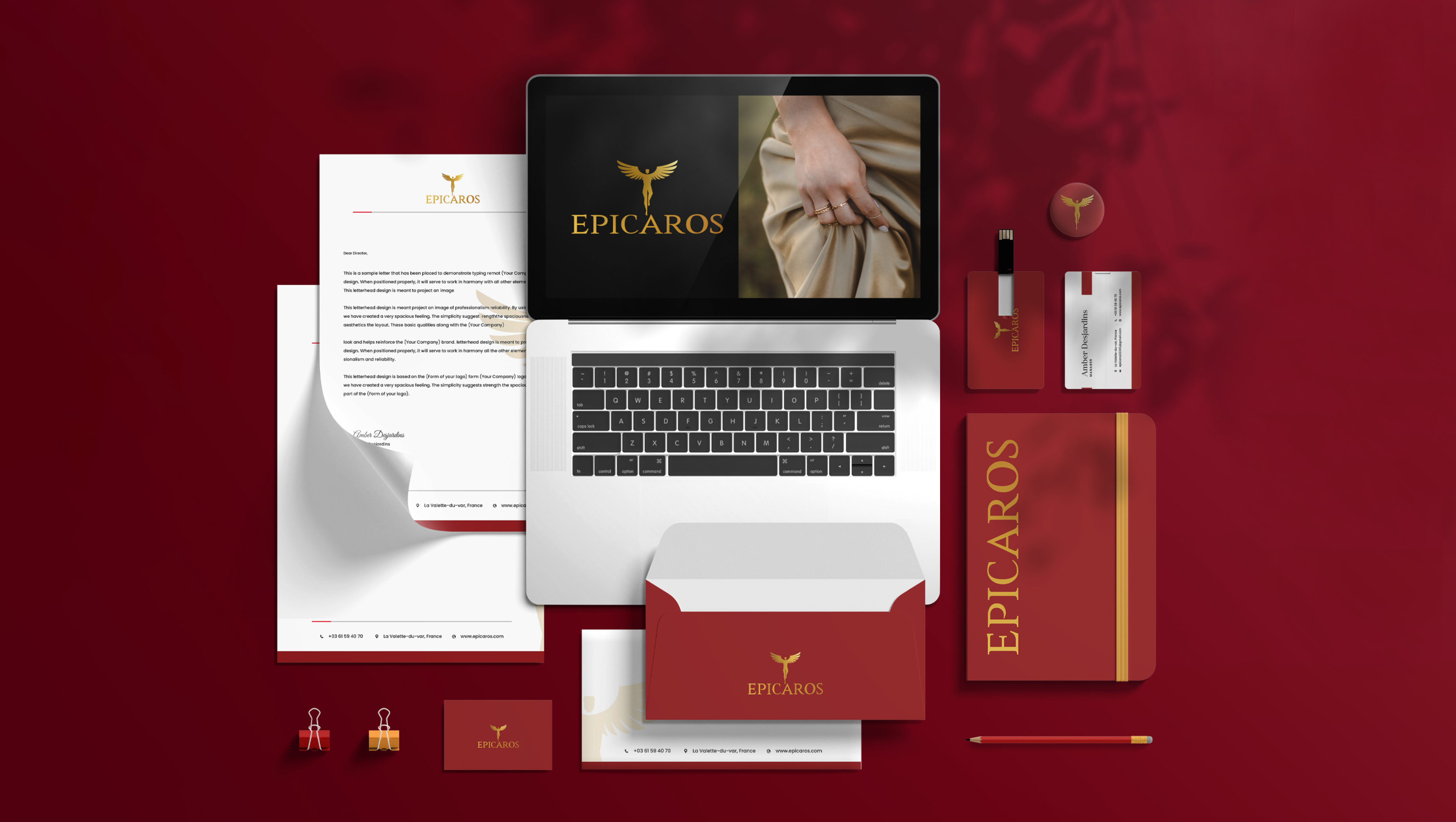 Epicaros approached us to create a logo and brand identity that reflects elegance, ambition, and resilience. Drawing inspiration from the myth of Icarus, the challenge was to design a system that communicates authority and aspiration while remaining versatile for jewelry, stationery, and digital applications.