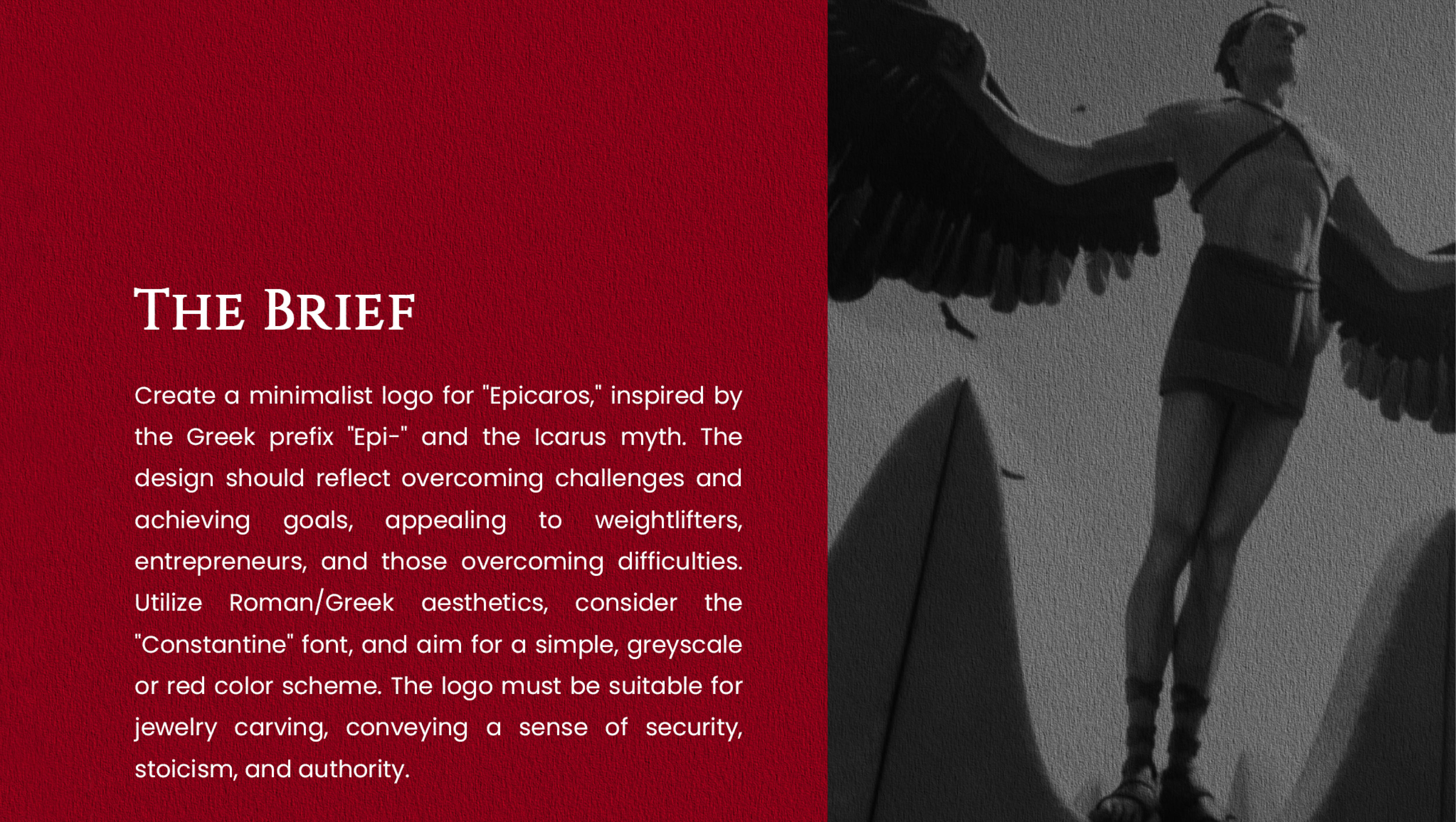 - Logo Design: A minimalist emblem inspired by the wings of Icarus, symbolizing ambition and freedom.