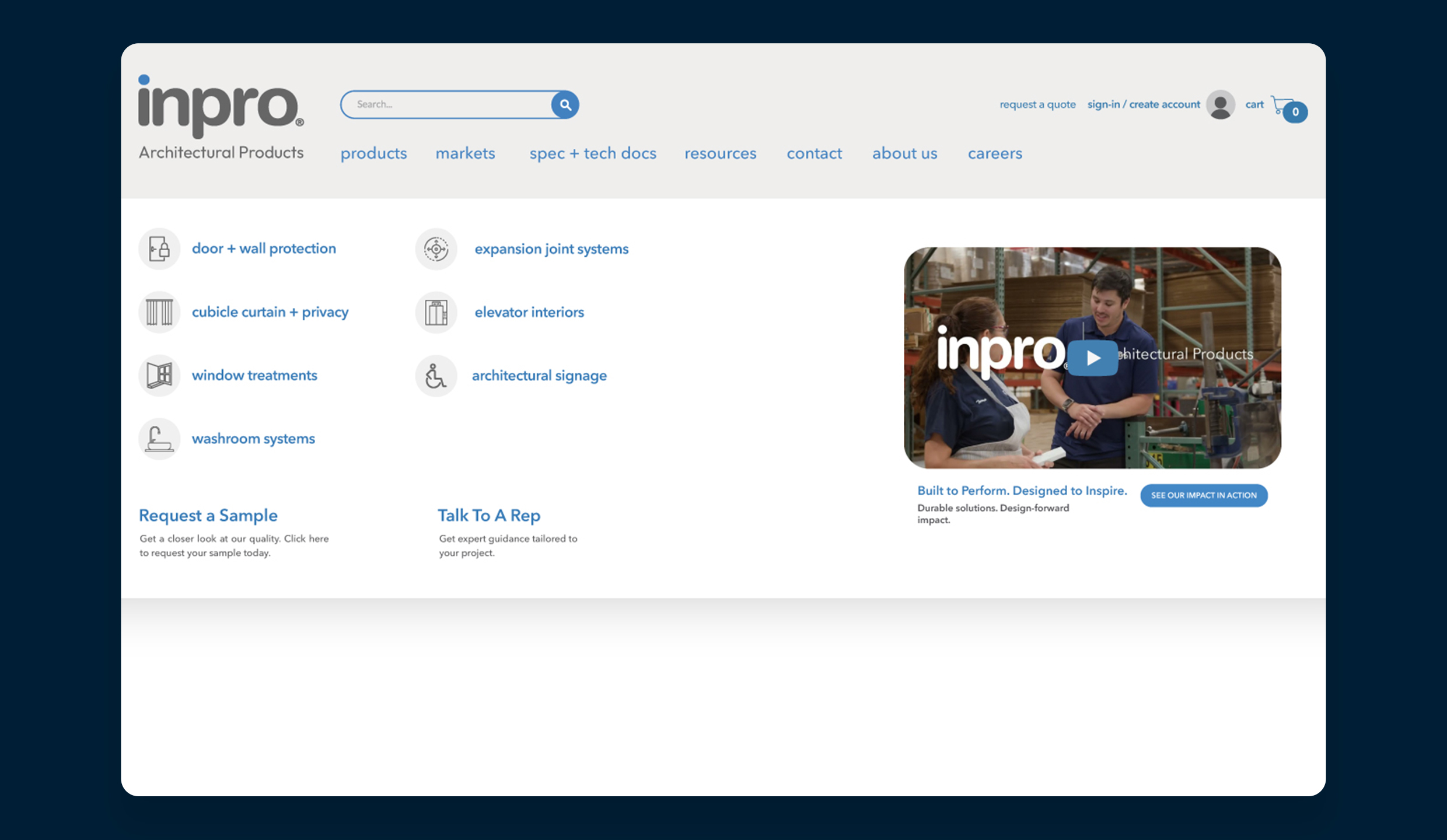 We created a mega menu design that organizes Inpro’s vast content into a simple, user-friendly structure.